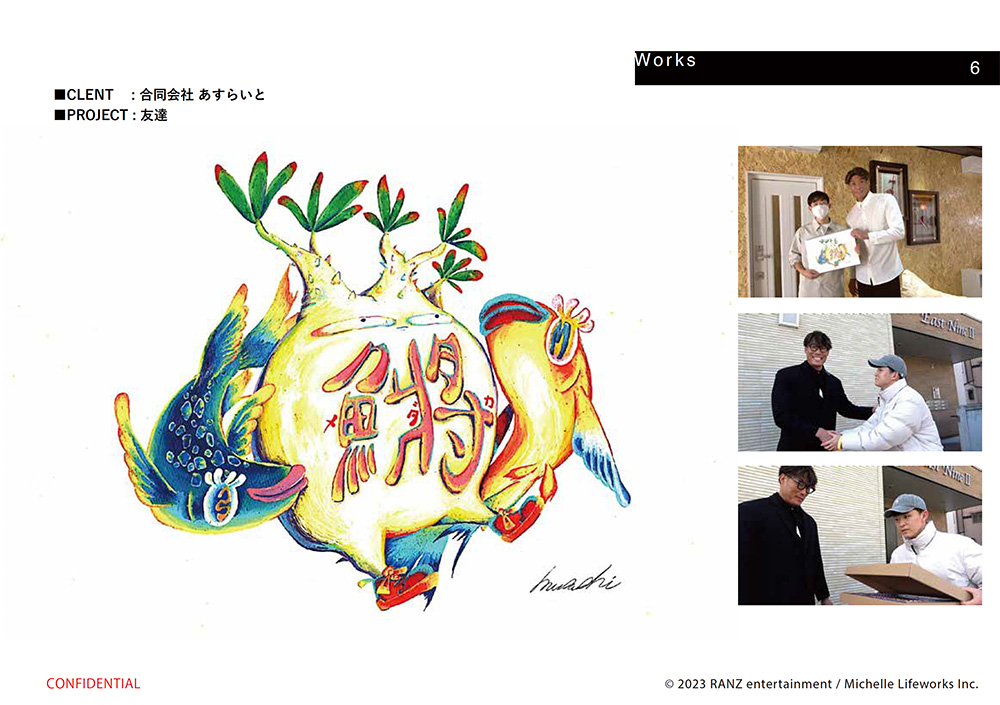 マーカー、アクリル、顔彩などを匠に取り入れ、色彩に優れた作品、キャラクターなどを描く。